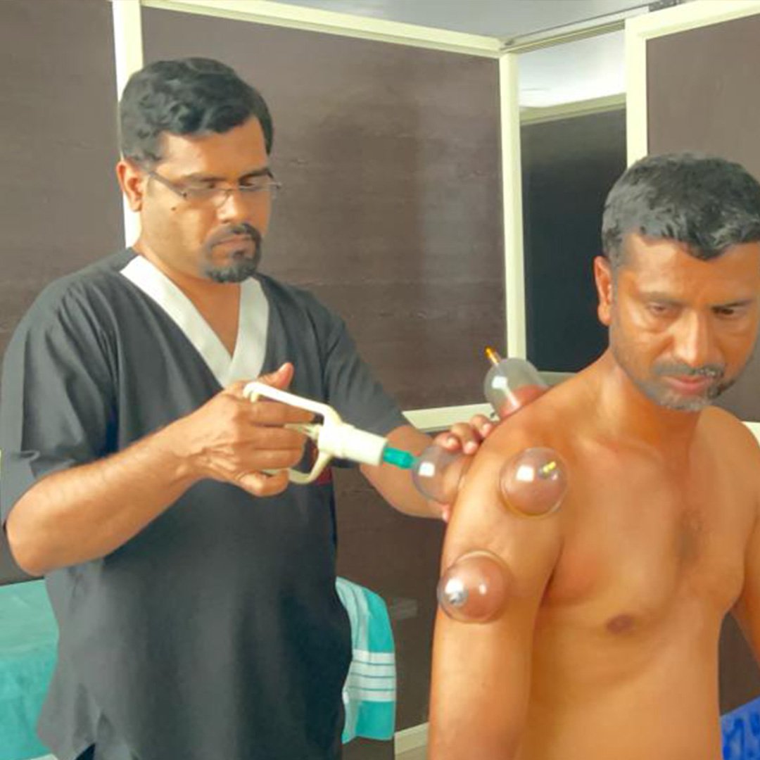 Hot Cupping and Vacuum Cupping therapies use suction to improve blood circulation, reduce muscle tension, and promote healing. These therapies help in allevating pain and inflammation, enhance oxygen supply to muscles and helps in relaxation, and boost overall well-being.