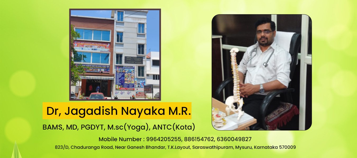 Dr. JagadishNayaka M R, a distinguished practitioner in the field of Ayurveda, holds multiple qualifications including BAMS, MD, PGDYT, MSc Yoga, and ANTC (KOTA). With a deep-rooted passion for Ayurvedic healing and over 15years of experience, doctor is renowned for his expertise in treating pain management and neurological disordes through administering ayurvedicneurotheray and panchakarma therapies. He integrates traditional Ayurvedic principles with modern medical knowledge to deliver personalized care that addresses the root causes of ailments, promoting holistic health and wellness